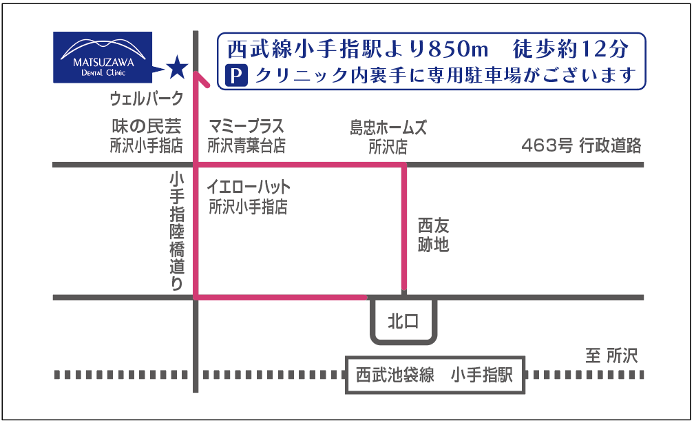 このたび松澤デンタルクリニックは、2024年6月2日(日)より下記住所(旧西友小手指店内のクリニックより徒歩7分)に移転し、新クリニックにおいて診察を開始する運びとなりました。